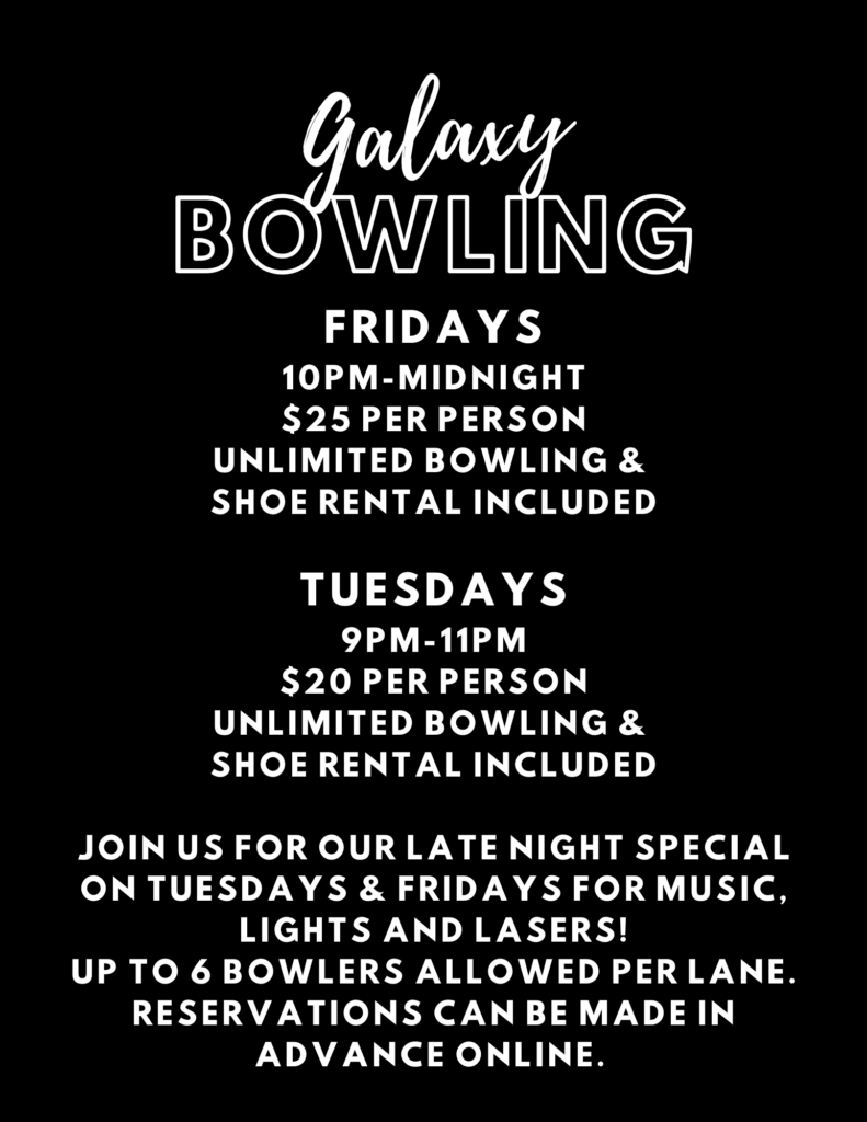 Reservations require a minimum of 2 lanes and a minimum of a $50 non-refundable deposit.