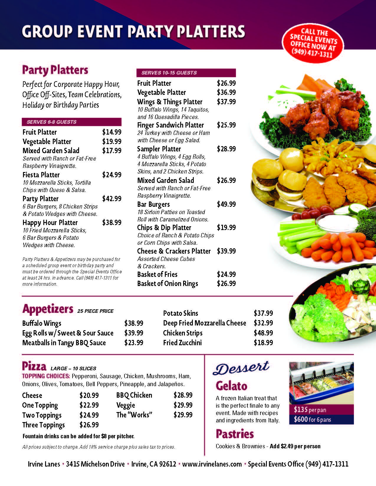 *Sales Tax and 18% Service Charge included in above prices. A minimum of 20 people is required.
